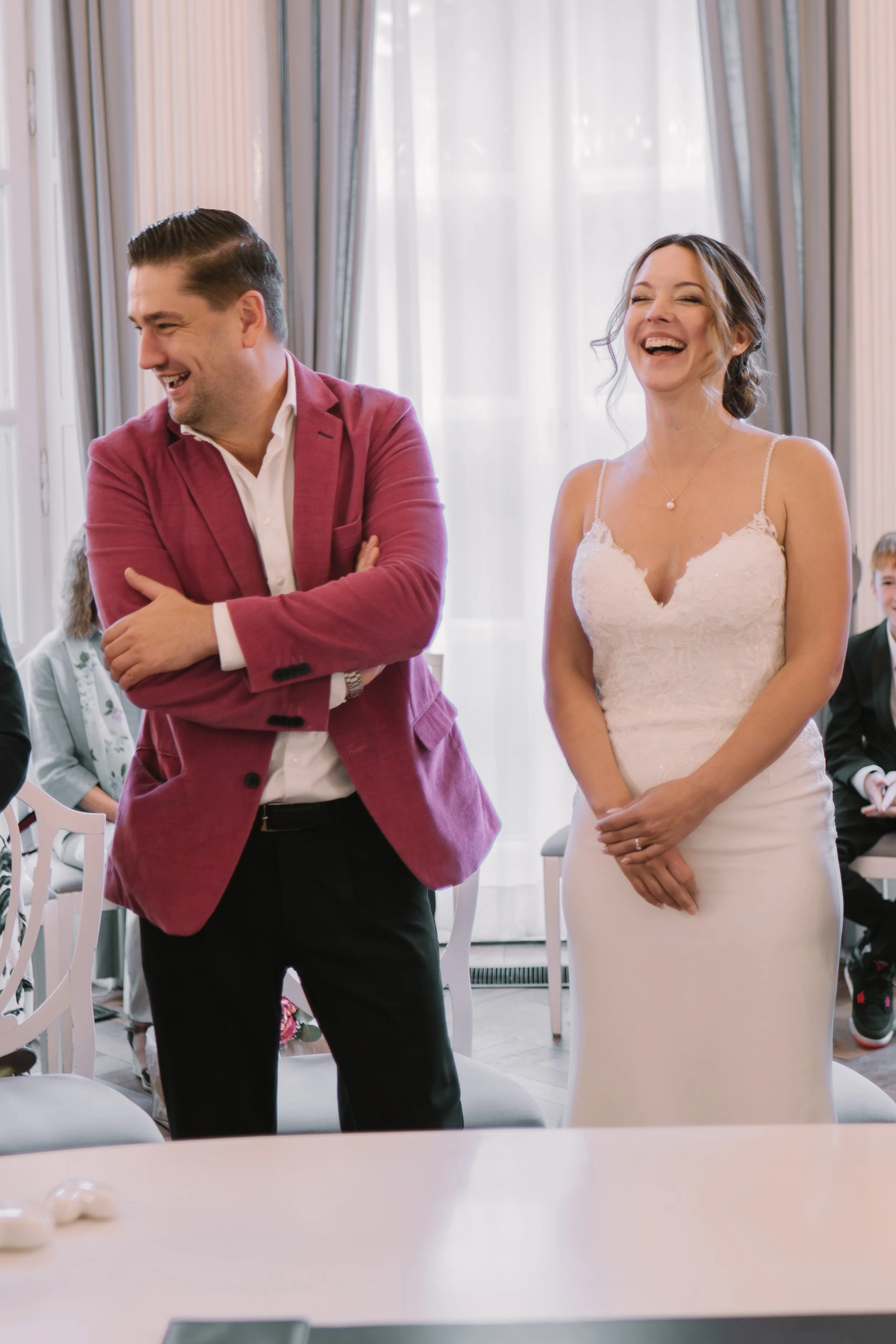 Genau in diesem Moment betrat das Brautpaar den Vorraum. Ich klopfte wie verrückt an die Tür und sie ließen mich rein. Auf die Minute. Ich war völlig außer Atem, aber erleichtert. Ich hatte es geschafft. Und obwohl die Situation stressig war, war es einer der schönsten Momente des Tages, weil ich genau in dem Augenblick da war, als sie sich ansahen und lächelten.